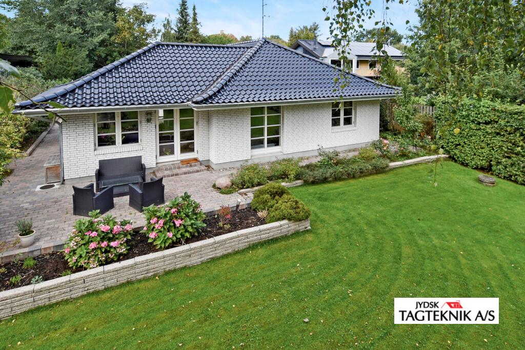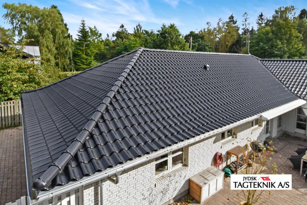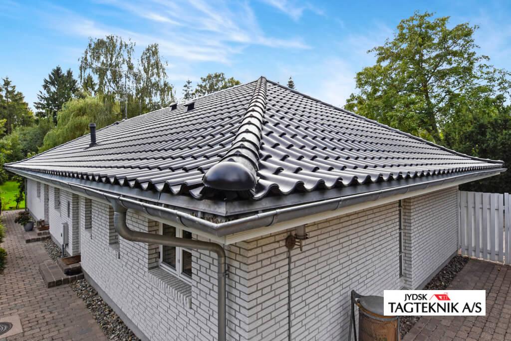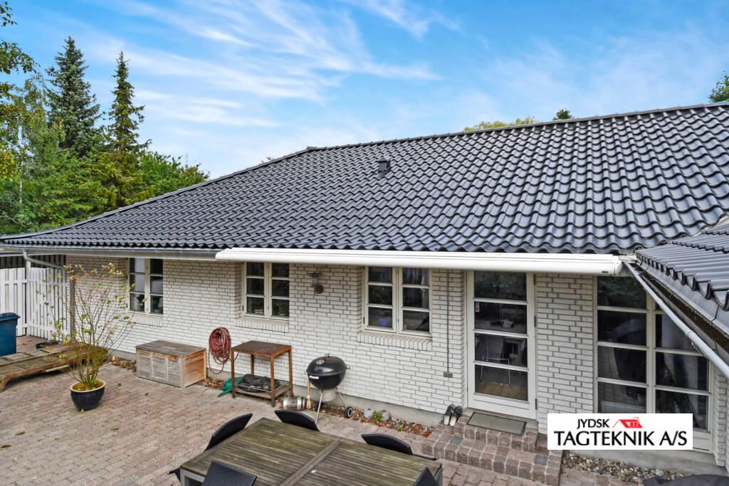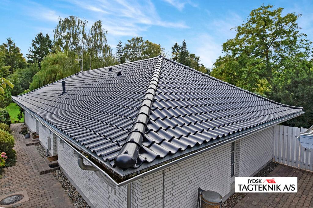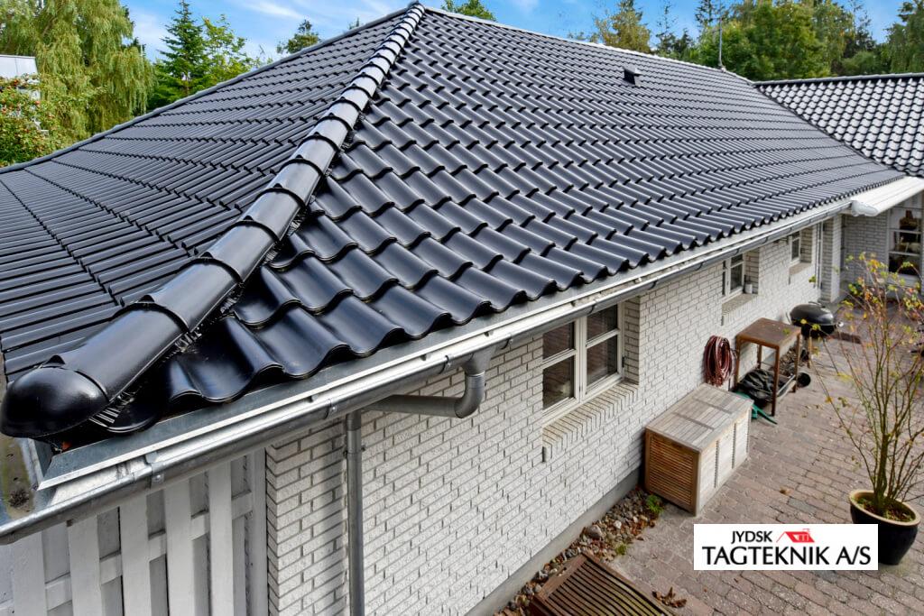 Villaen i Lyngby fik lagt nyt sortglaseret tegltag, ejendommen fik også monteret nye zinktagrender.