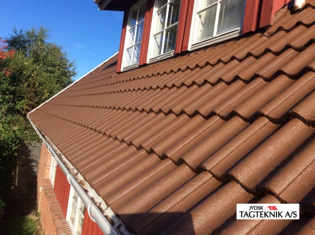 Portfolio » Villaen i Mariager ved Randers blev som nyt igen efter en tagrenoveringen (Farve: Mokkabrun)