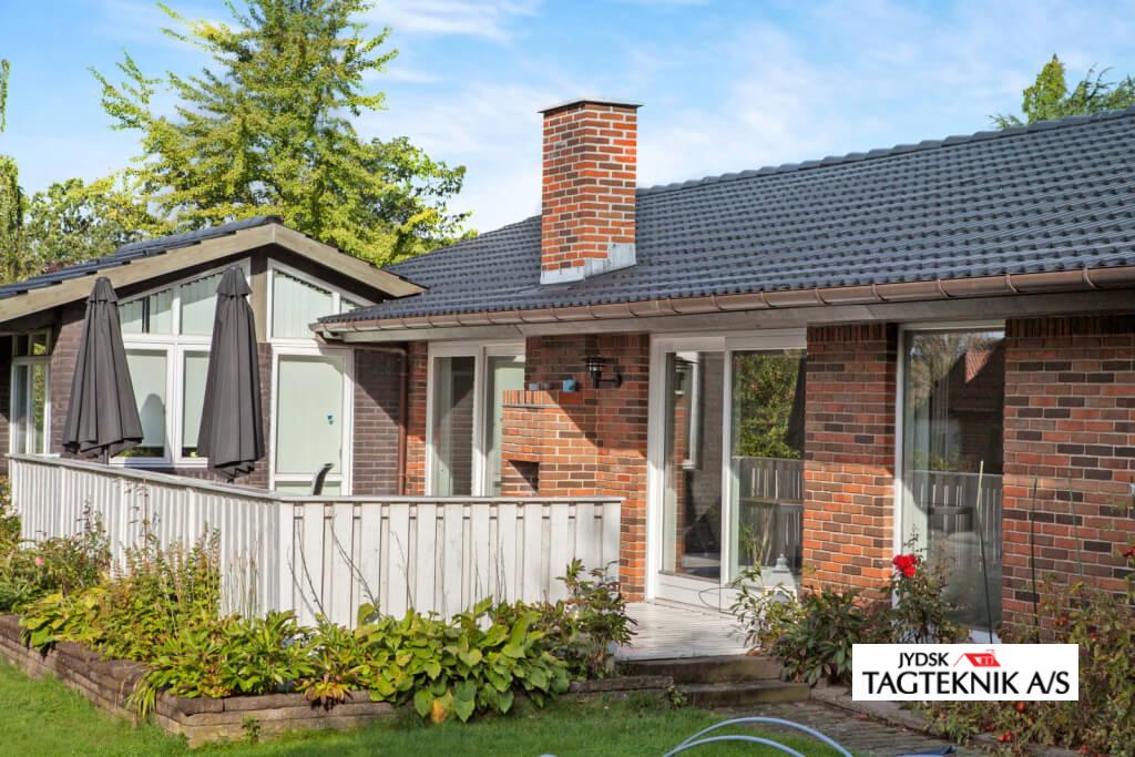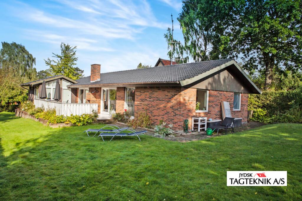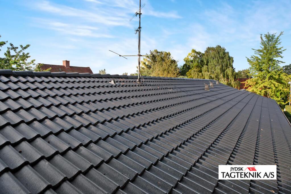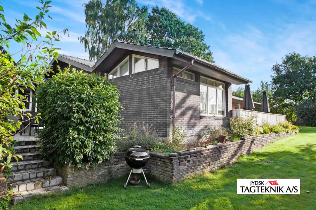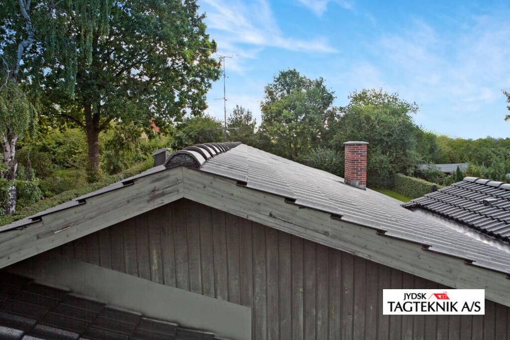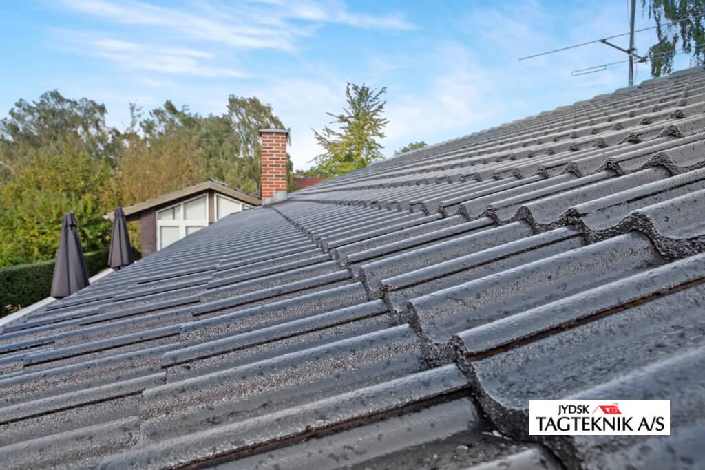 Villaen i Søborg fik renoveret det gamle betontegltag, tagrenoveringen bestod i en rensning, algebehandling og en overflade behandling, grundig samt 2 gange maling.