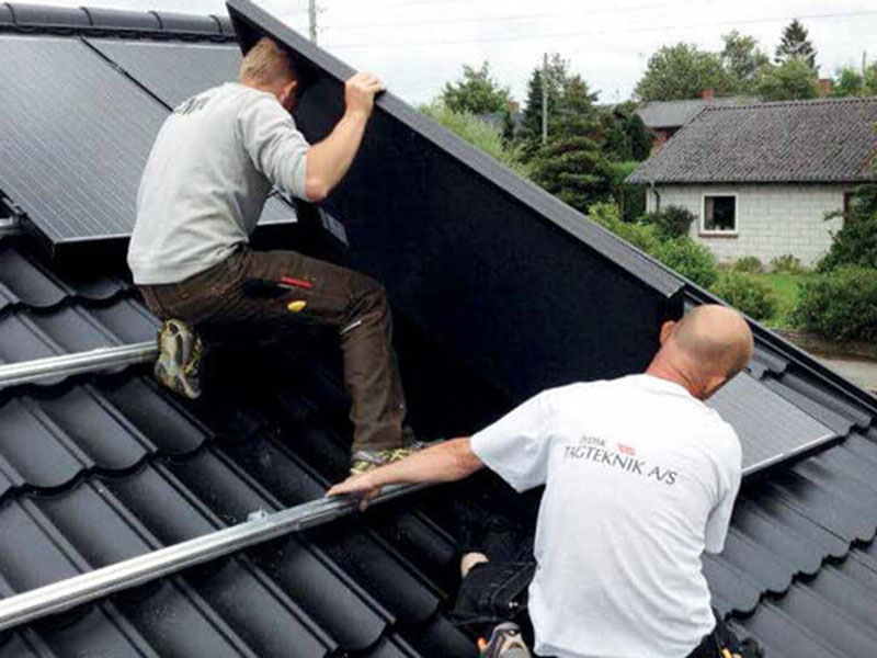 Vores store erfaring med tage gør, at vi har et indgående kendskab til montering af solceller. Det er meget vigtigt, at solceller bliver monteret korrekt, da det ellers kan give problemer med utætheder.